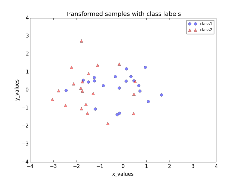 # -*- coding:utf-8 -*- # Filename: main.py # Author:hankcs # Date: 2016-11-09 PM5:18 import numpy as np np.random.seed(234234782384239784) # random seed for consistency, you can remove this if needed mu_vec1 = np.array([0,0,0]) cov_mat1 = np.array([[1,0,0],[0,1,0],[0,0,1]]) class1_sample = np.random.multivariate_normal(mu_vec1, cov_mat1, 20).T assert class1_sample.shape == (3,20), "The matrix has not the dimensions 3x20" mu_vec2 = np.array([1,1,1]) cov_mat2 = np.array([[1,0,0],[0,1,0],[0,0,1]]) class2_sample = np.random.multivariate_normal(mu_vec2, cov_mat2, 20).T assert class1_sample.shape == (3,20), "The matrix has not the dimensions 3x20"