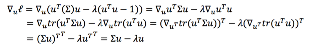 ,代表子空间中的一个点,我们希望所有点到原点的距离之和最远(假设我们将数据集的均值处理为0,则这等效于方差最大),也就是说我们想要找到一个单位向量u,使得: