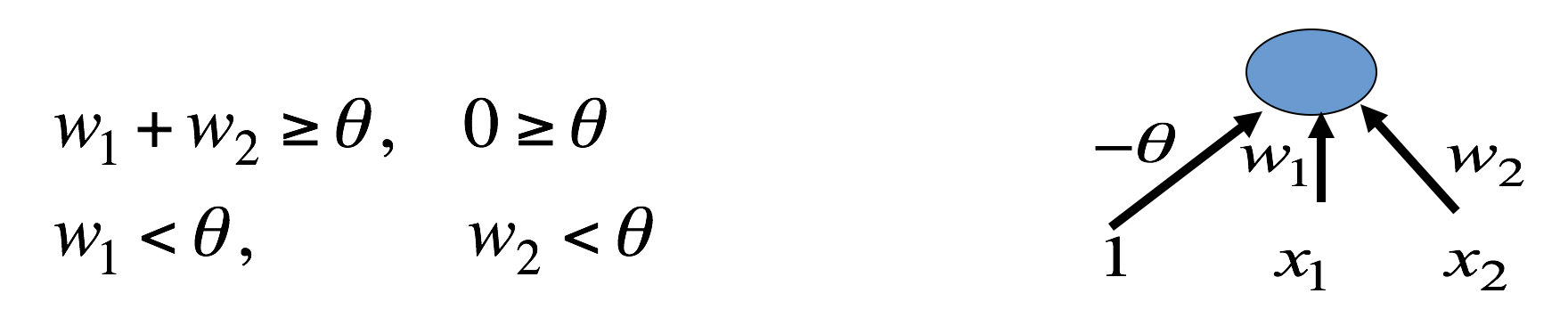 把1和2加起来得到w1+w2>=2theta,把3和4加起来得到w1+w2<2theta,无解。